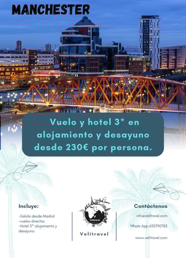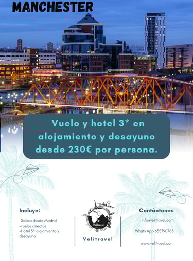 MANCHESTER Vuelo y Hotel 3* alojamiento y desayuno desde 230€ por persona.