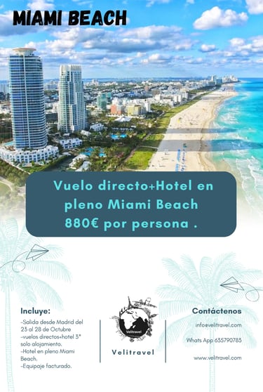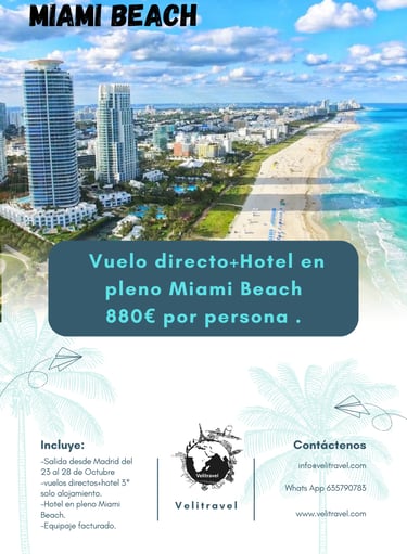 MIAMI Vuelos directos+Hotel en pleno Miami Beach del 23 al 28 de Octubre 880€ por persona.