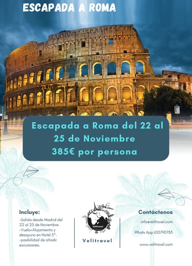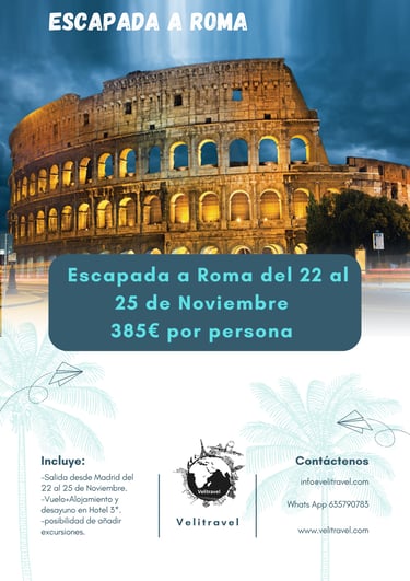 ROMA Del 22 al 25 de Noviembre Vuelos desde Madrid Alojamiento y Desayuno en Hotel 3* por 385€ por persona.