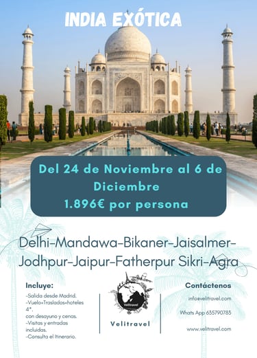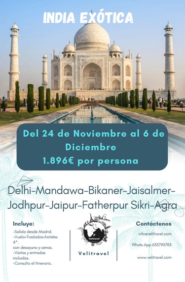 INDIA: Del 24 de Noviembre al 6 de Diciembre, Media pension con un itinerario increible visitando varias ciudades en hoteles 4*. por 1.896€ por persona.