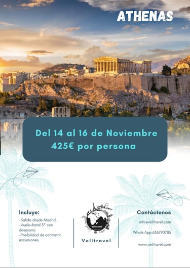ATHENAS Del 14 al 16 de Noviembre. Vuelos+Hotel 3* con desayuno. 425€ por persona.