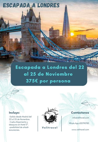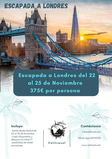 LONDRES Del 22 al 25 de Noviembre, Vuelos y hotel 3* Alojamiento y desayuno. por 375€ por persona.