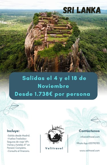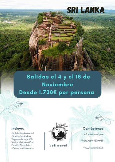 SRI LANKA Salida el dia 4 y el 18 de Noviembre. Vuelos desde Madrid. Traslados, hoteles de 4* en pensión completa, seguro de viaje VIP, visitas incluidas. Duración 9 días desde 1.738€ por persona.