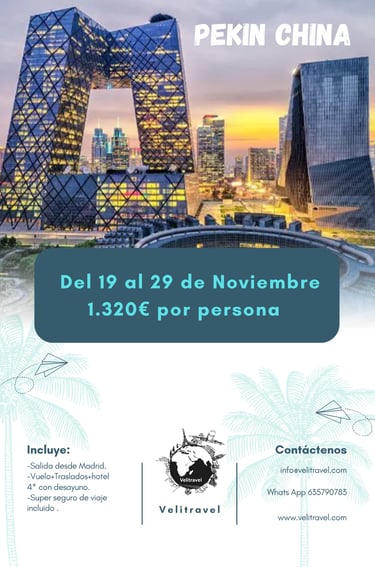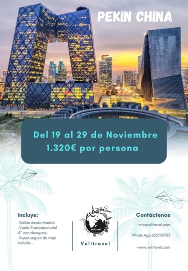 PEKIN CHINA: Del 19 al 29 de Noviembre , vuelos directos+traslados+hotel 4* con desayuno y super seguro de viaje incluido. por 1.320€ por persona.