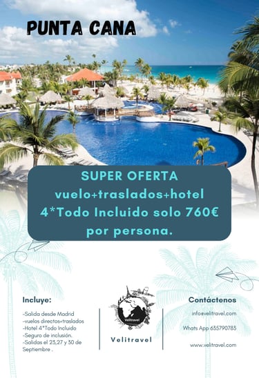 PUNTA CANA Salidas el 23,27 y 30 de Septiembre, Vuelos directos, traslados y hotel 4* Todo Incluido +Seguro de incluision SOLO 760€ por persona.